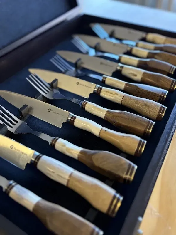 Cada pieza es elaborada por manos expertas con materiales nobles y terminaciones de excelencia. Ofrecemos sets de cuchillería y tablas de asado únicos, ideales para transmitir distinción y calidad en regalos empresariales.